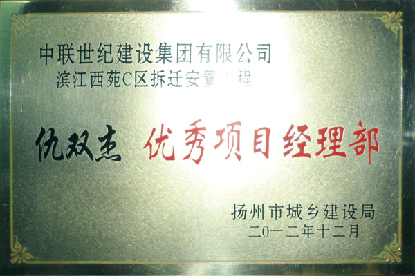 近日,喜訊傳來,集團(tuán)公司揚(yáng)州濱江西苑C區(qū)拆遷安置工程因標(biāo)準(zhǔn)管理、規(guī)范施工、措施具體、責(zé)任明確,被揚(yáng)州市城鄉(xiāng)建設(shè)局授予“仇雙杰 優(yōu)秀項(xiàng)目經(jīng)理部”榮譽(yù)稱號(hào)。 圖為獎(jiǎng)牌